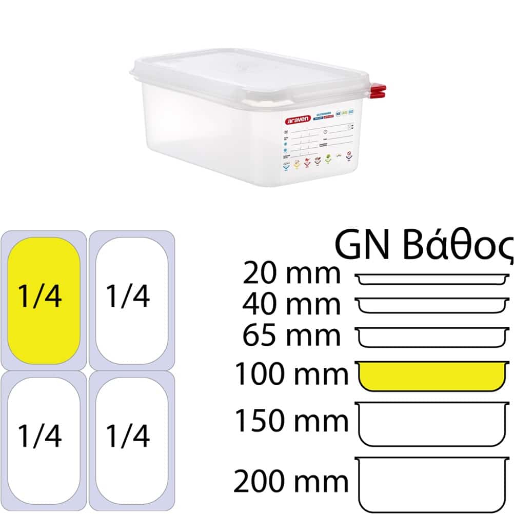 Αεροστεγές Δοχείο PP με καπάκι, Σειρά HERMETICA GN1/4, 2.8lt 265x162x100mm, ARAVEN