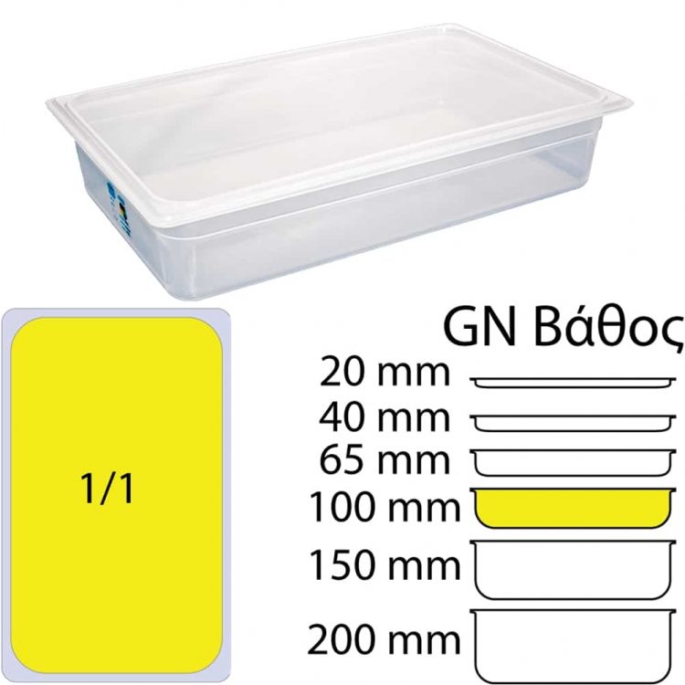 Αεροστεγές Δοχείο Τροφίμων PP διαφανές με καπάκι, GN1/1