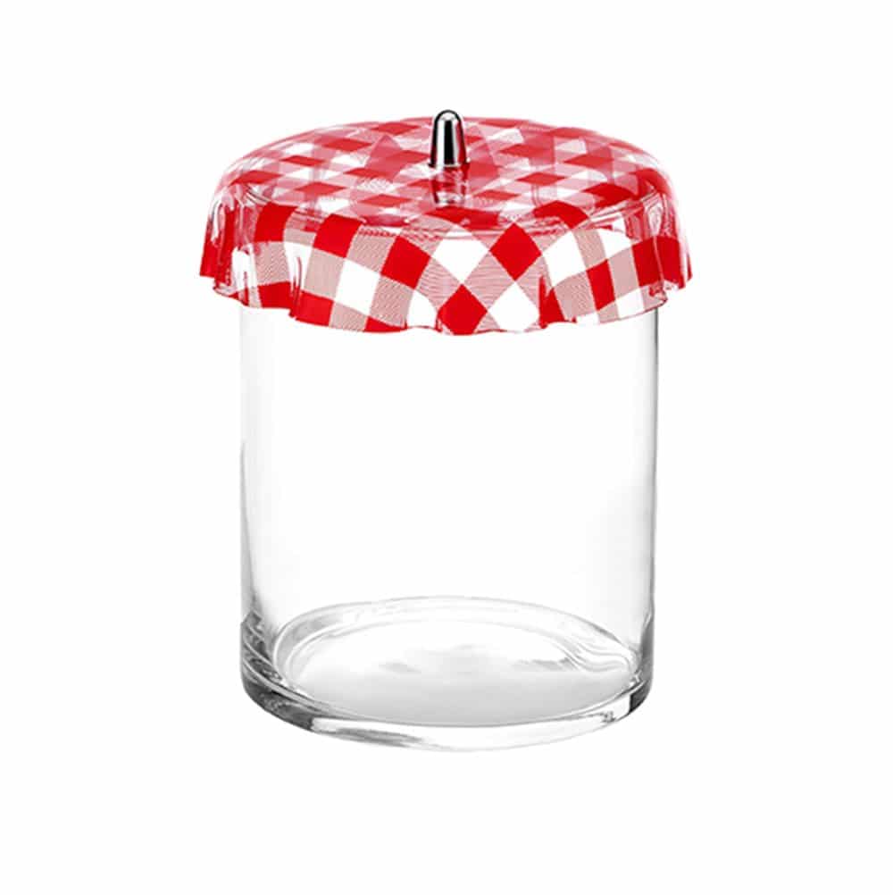 Δοχείο γυάλινο 7.5 λίτρα φ20x25cm με πλαστικό καπάκι Plexiglass καρώ κόκκινο