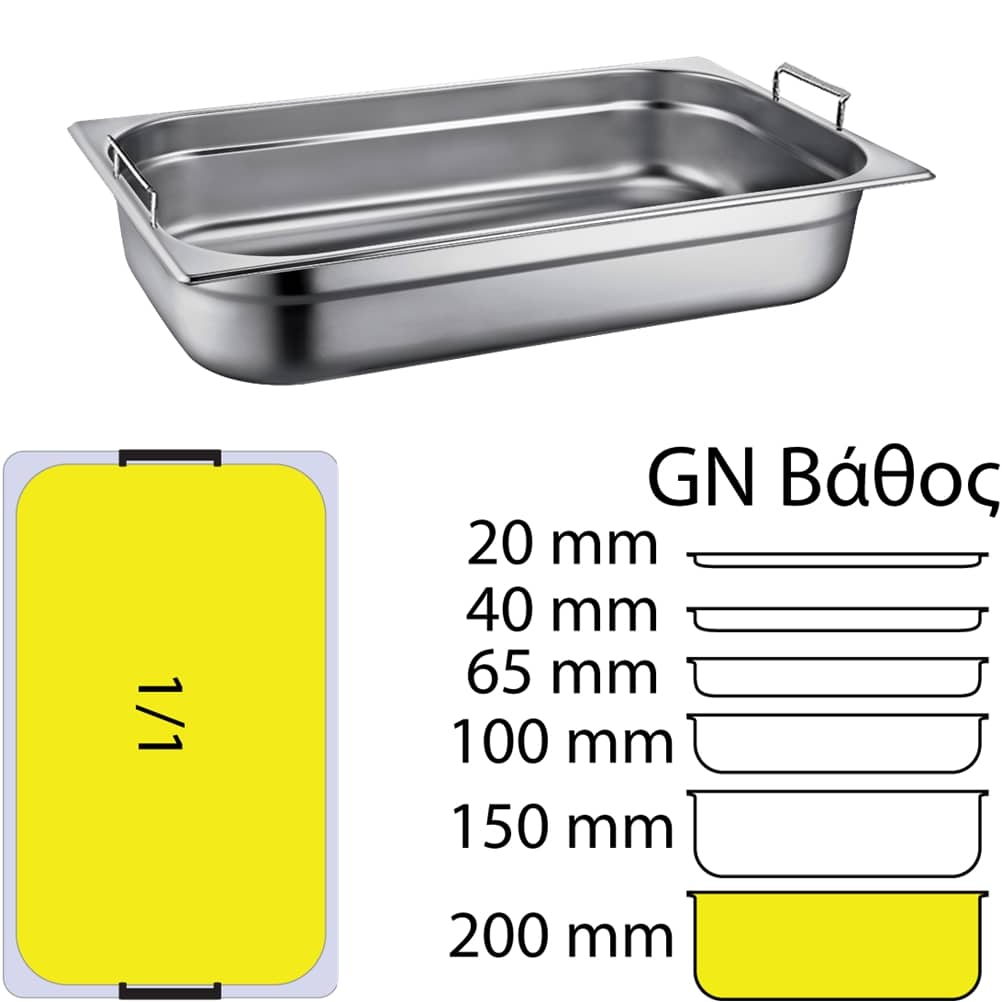 Δοχείο γαστρονομίας ανοξείδωτο 18/10 με χερούλια, GN1/1 (53×32.5cm)-20cm, FUECO