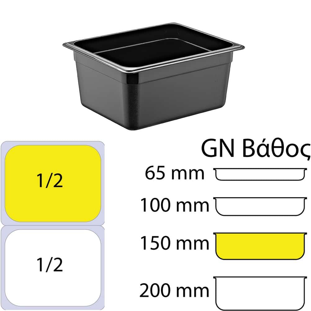 Δοχείο Τροφίμων PC, Μαύρο, χωρίς καπάκι, GN1/2 (265 x 325mm) – ύψος 150mm