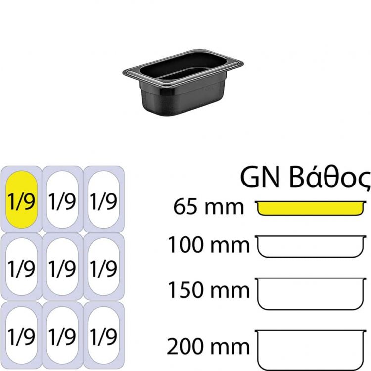Δοχείο Τροφίμων PC, Μαύρο, χωρίς καπάκι, GN1/9 (108 x 176mm) – ύψος 65mm