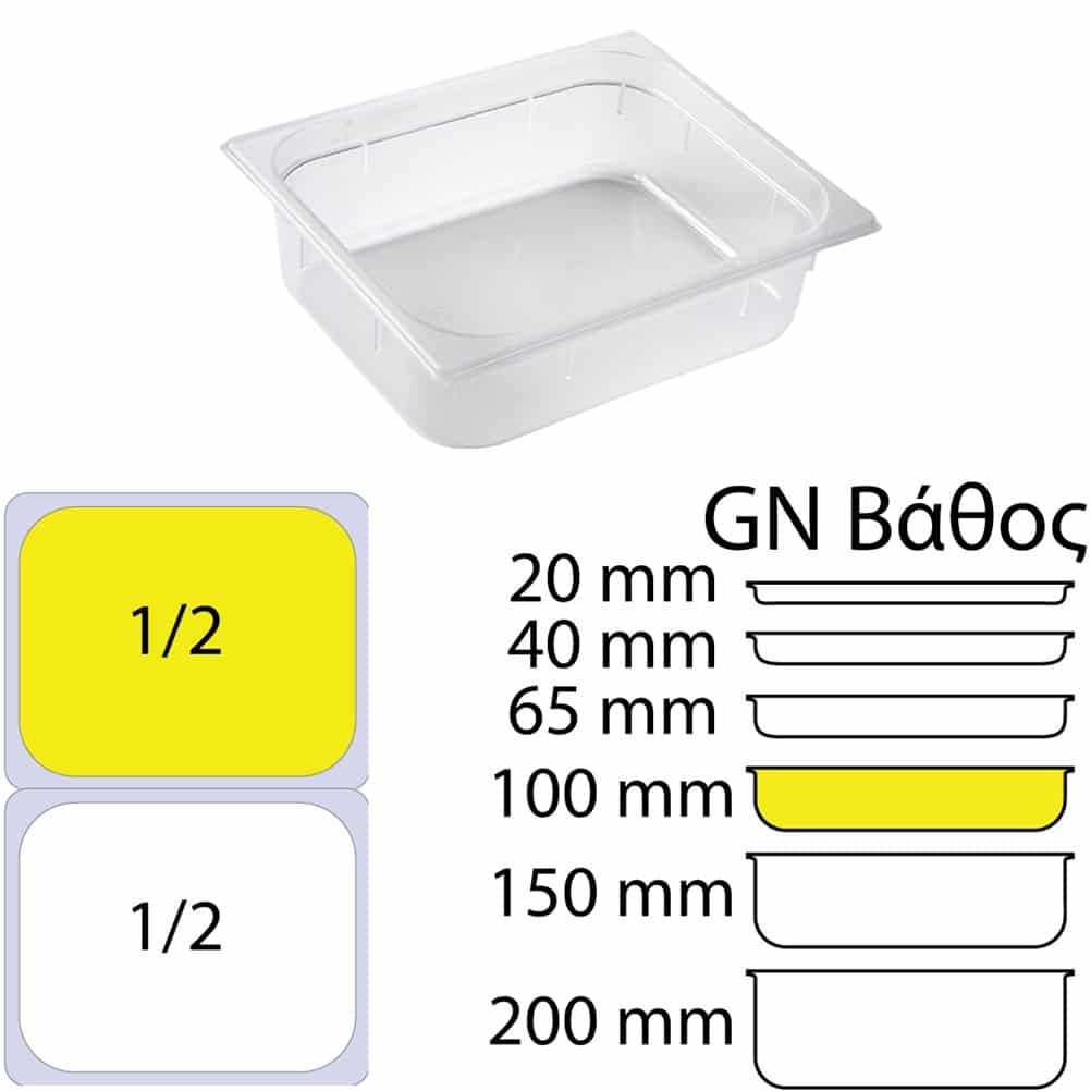Δοχείο Τροφίμων PP, Διάφανο, χωρίς καπάκι, GN1/2 (265 x 325mm) – ύψος 100mm