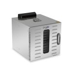 Ο αποξηραντής τροφίμων είναι μια συσκευή αποξήρανσης σε ένα εύρος από 30°C έως 90°C, φρούτα, λαχανικά, μανιτάρια και βότανα. Κατά την αποξήρανσή, αφαιρείται το νερό/υγρασία που περιέχεται στην τροφή και τα τρόφιμα αφυδατώνονται. Έτσι, διατηρούνται τα θρεπτικά συστατικά ενός φρούτου ή λαχανικού εάν αποθηκευτεί σωστά σε αεροστεγή γυάλινα βάζα. Είναι ιδανικό για όμορφα και υγιεινά σνακ όπως φρούτα (αχλάδια, δαμάσκηνα, βερίκοκα, μπανάνες κ.λπ.),σταφίδες, αποξηραμένα λαχανικά για σούπες, αποξηραμένες ντομάτες, αποξηραμένα βότανα, τσάι από βότανα (μέντα, χαμομήλι κλπ.), αποξηραμένα μανιτάρια για σούπες και γεύματα, αποξηραμένα πορτοκάλια για διακόσμηση, αποξηραμένους σπόρους κολοκύθας κ.α. Οι αποξηραντές της σειράς Dynamic διαθέτουν πίνακα οθόνης αφής για ψηφιακό έλεγχο. Η λαβή της πόρτας μπορεί να είναι πλαστική ή αλουμινένια και η συσκευή είναι ανοξείδωτη SUS304. Με αποσπώμενους δίσκους και πρόσθετο δίσκο για τα ψίχουλα. Ρυθμιζόμενος χρόνος 0-24 ώρες και εύρος ρύθμισης θερμοκρασίας: 30~90°C. Θόρυβος λειτουργίας στα 45-50 ντεσιμπέλ. Συνοδεύεται από 12 δίσκους.