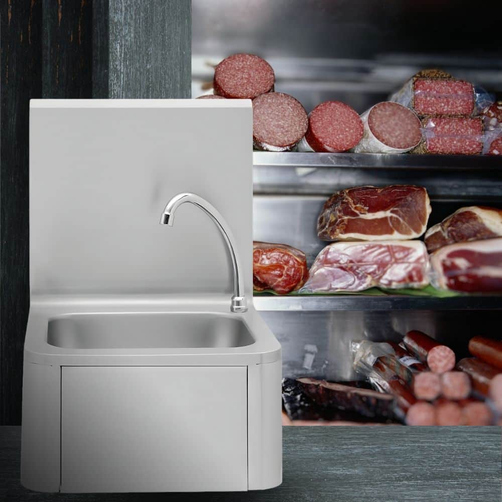 Επαγγελματικός νιπτήρας χεριών για καταστήματα διάθεσης τροφίμων, επαγγελματικές κουζίνες και τμήματα κοπής κρεάτων, τυριών, αλλαντικών, ψαριών σε κρεοπωλεία, delicatessen, ιχθυοπωλεία, super market κ.α.