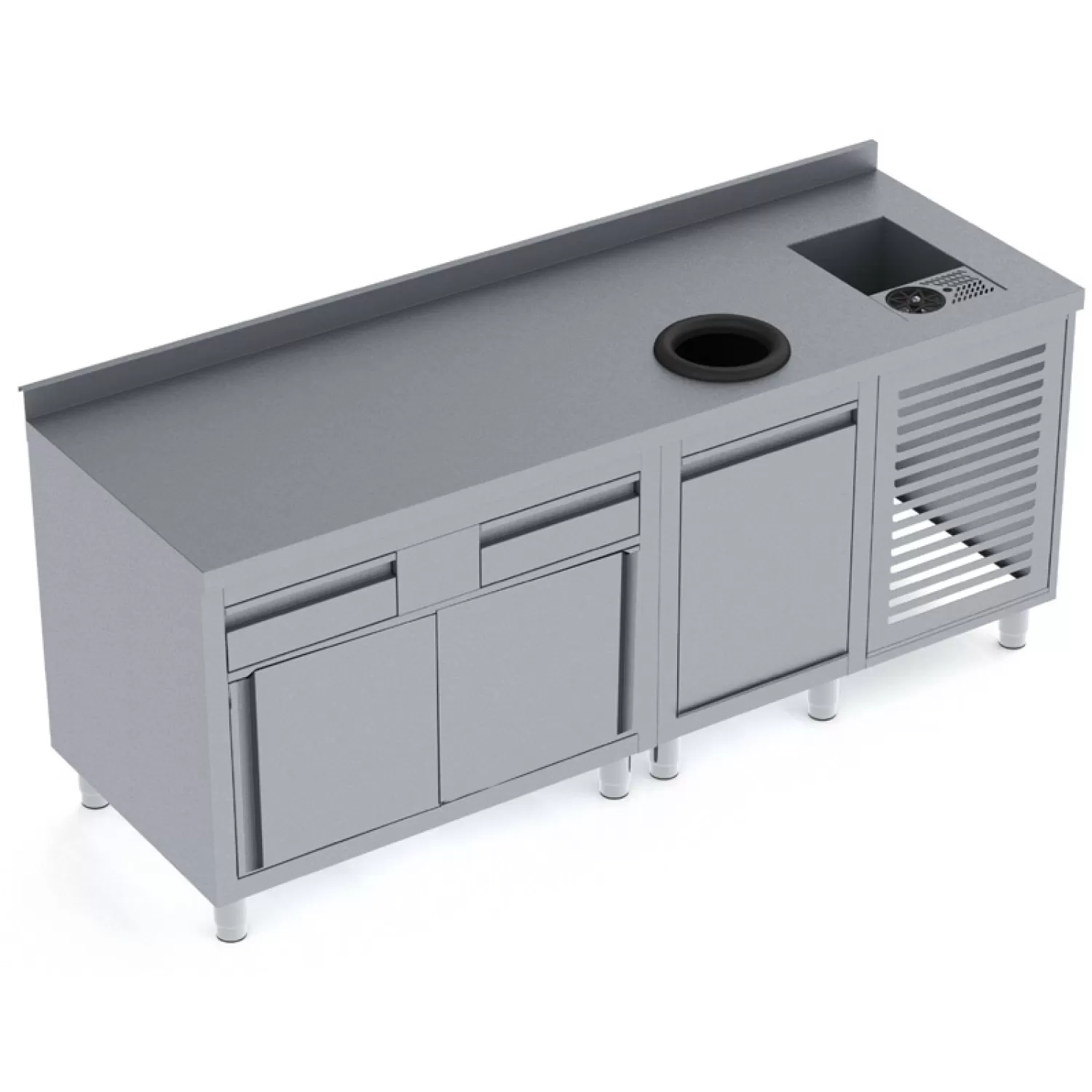 Ερμάριο Καφέ – Bar Station με θέση ψυγείου,γούρνα,rinser,απορρίμματα,συρταριέρα καφέ 200x70x92cm – Prochef Ecoline