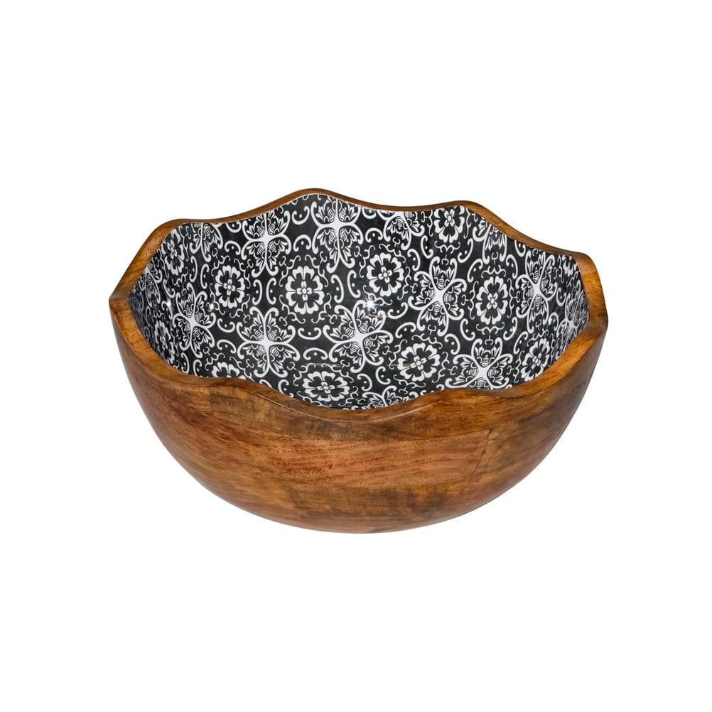 Ξύλινο Μπωλ για Μπουφε φ30x11cm Λουλούδι μαύρο