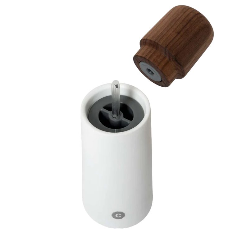 Μύλος Πορσελάνης λευκός, Αλατιού/Πιπεριού/Μπαχαρικών (σειρά STOCKHOLM), καπάκι καρυδιάς, 17cm, CrushGrind Δανίας