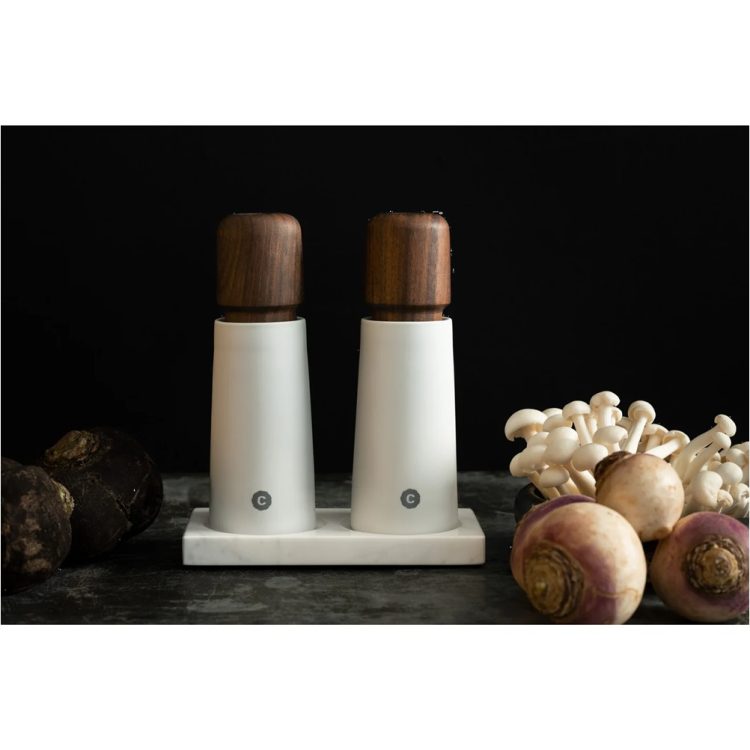 ΣΕΤ Μύλος Αλατιού & Πιπεριού 12cm με βάση, άσπρος/μαύρος, CrushGrind Δανίας