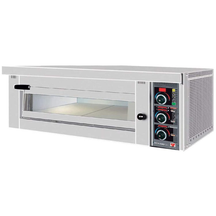 Είναι εξοπλισμένος με στιβαρές μηχανικές πόρτες με μεγάλο γυαλί και εργονομικές χειρολαβές. Η μεγάλη επιφάνεια γυαλιού προσφέρει άνετη πτική στο εσωτερικό του θαλάμου, χωρίς καμία απώλεια θερμότητας. Με πλάκες εψήσεως με το ειδικό πορώδες κεραμικό υλικό που προκαλεί ροή αέρα γύρω απο την πίτσα και αντοχή σε μεγάλες θεμροκρασίες.
