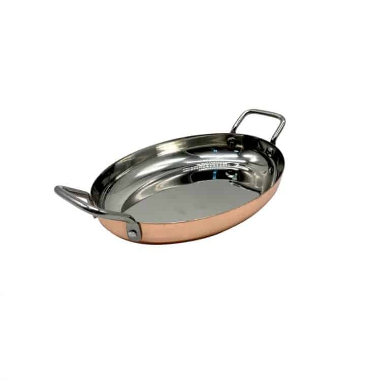 Σαγάνι σερβιρίσματος οβάλ με 2 χερούλια INOX/Χάλκινο 18(23)x13.4xΥ2.2cm