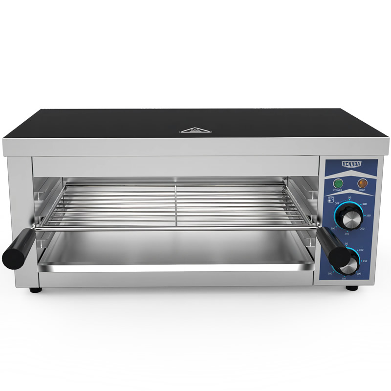 Σαλαμάνδρα 2500kW ES-937 με χρονοδιακόπτη μέχρι 30 λεπτά και θερμοστάτη από 50°-300°C. Ιδανική για επαγγελματικές κουζίνες που απαιτούν αξιόπιστες και ευέλικτες λύσεις για το ψήσιμο, γκραντινάρισμα και το ζέσταμα φαγητού.
