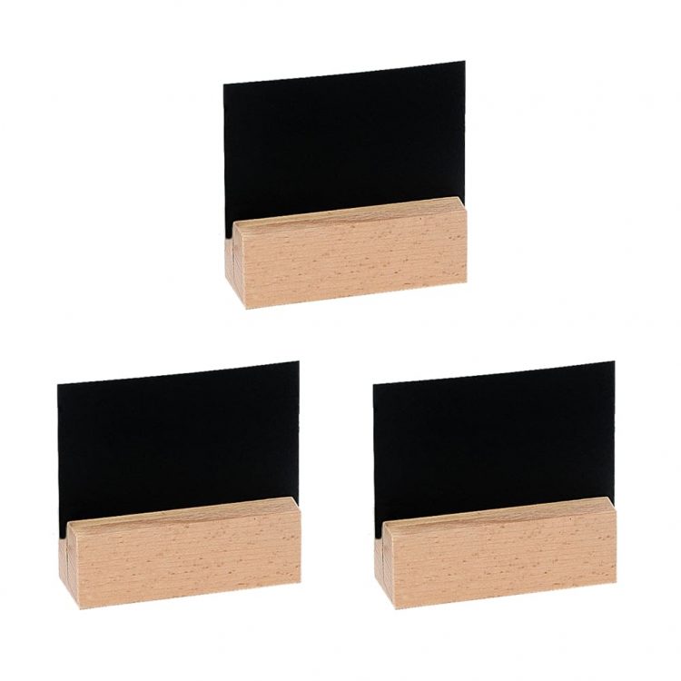 Σετ 3 Κάρτων 2 Όψεων, ΜΑΤ μαύρη με Ξύλινη Βάση, 7×10 cm