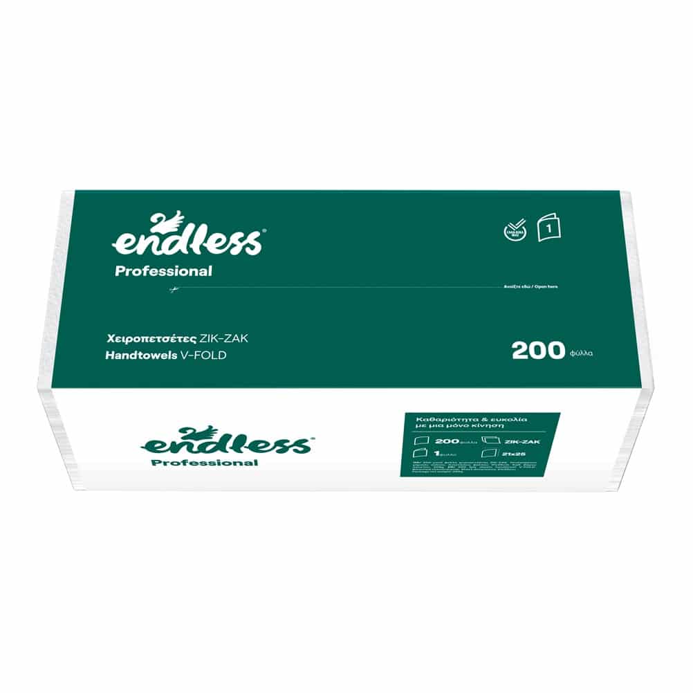 Χειροπετσέτες Ζικ Ζακ Επαγγελματικές, 200 τεμαχίων, 1φυλλες, 229 gr, ENDLESS – Συσκευασία 20 πακέτων