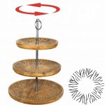Ξύλινη τουρτιέρα 3 επιπέδων, φ35xΥ55cm, Mango σε φυσική απόχρωση, σκαλιστό σχέδιο μαύρο antique